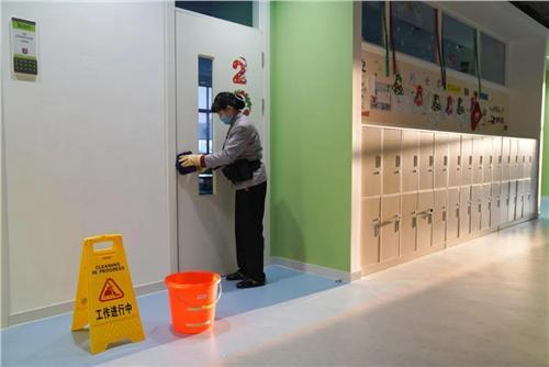 基于上海教委的相关要求,宏文学校物体表面执行了最严格的的“三消三洗”标准。远东宏信旗下专业物业公司—上海柏悦物业服务有限公司,在疫情期间还向学校定向增派了多名保洁人员。