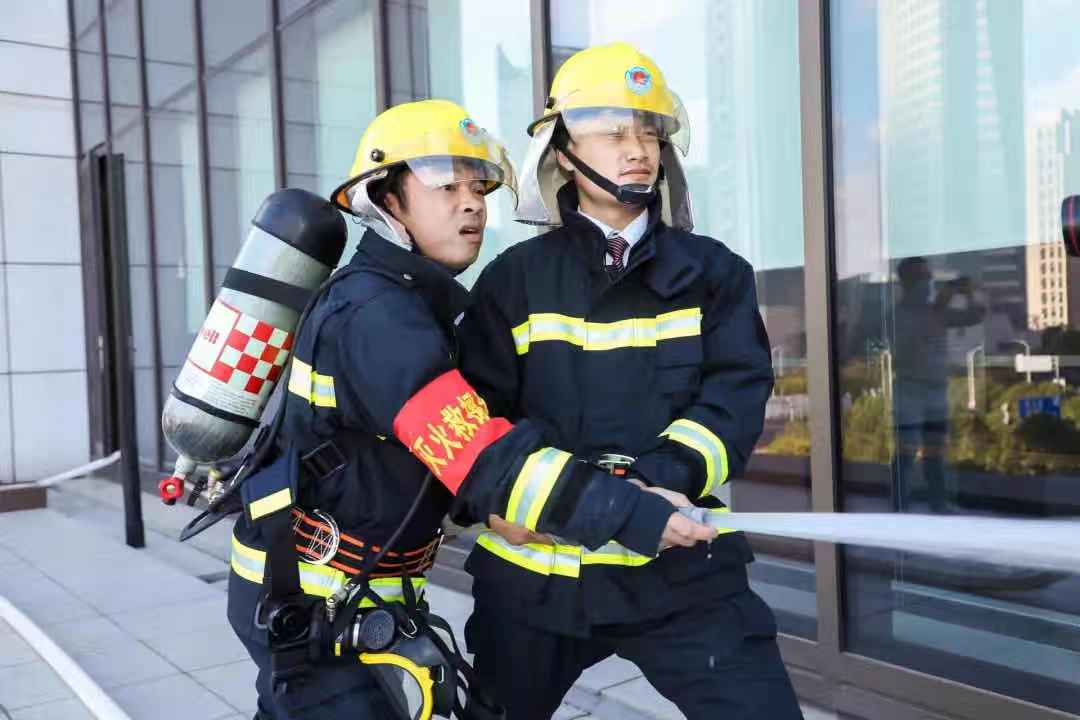 大楼外,后勤保障组疏导员工到安全区域,引导消防车到达有利位置,并采取心肺复苏等措施,紧急救援“受伤”员工。半小时后,“火情”得到有效控制,警报解除,大楼逐渐恢复正常秩序。