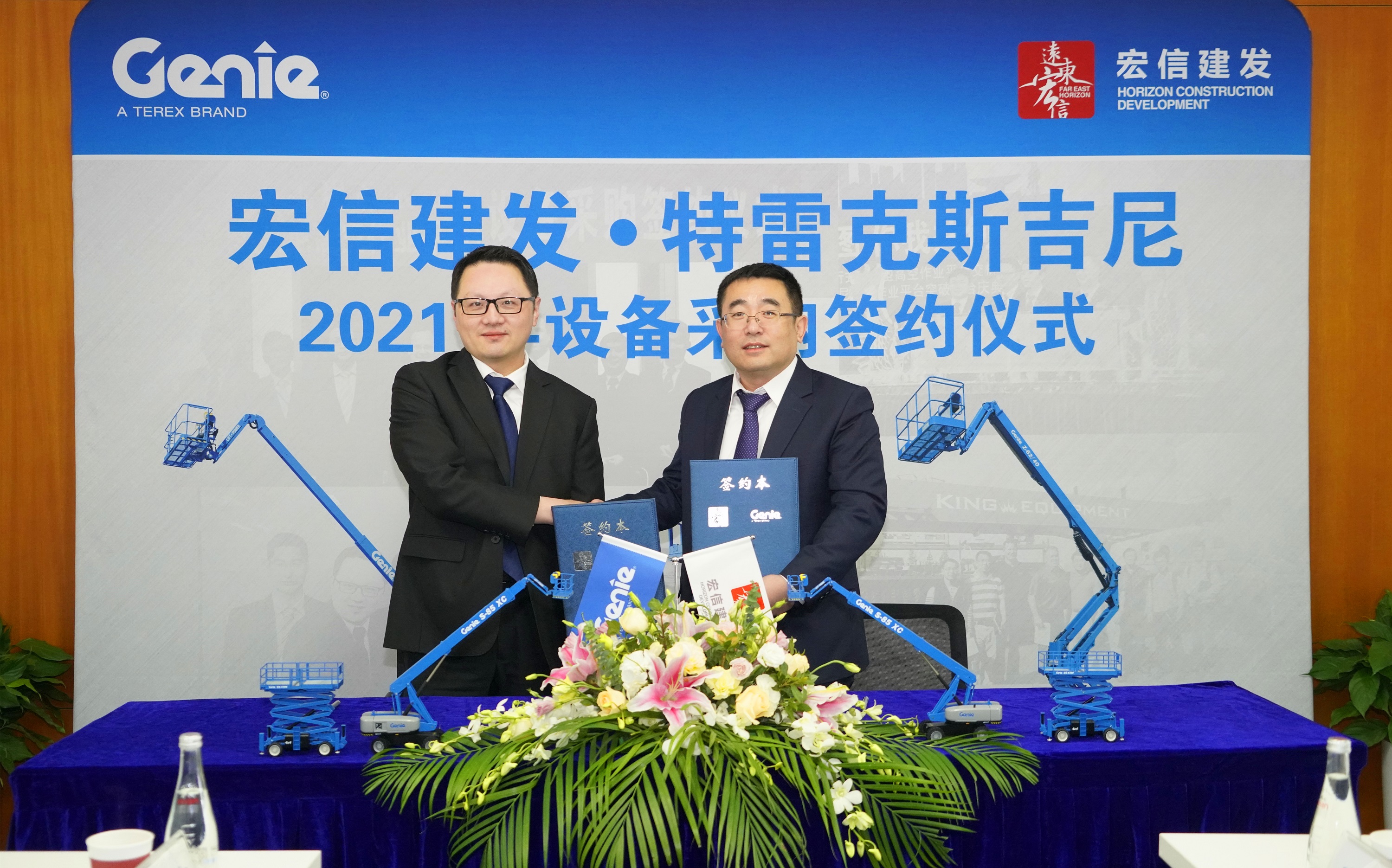 1月29日-30日,远东宏信旗下上海宏信建设发展有限公司(以下简称“宏信建发”)与高空作业平台领域的两家龙头企业——浙江鼎力机械股份有限公司(以下简称“浙江鼎力”)和特雷克斯吉尼(以下简称“吉尼”)分别举行2021年度设备采购协议签约仪式,宏信建发总经理章春雨出席活动。