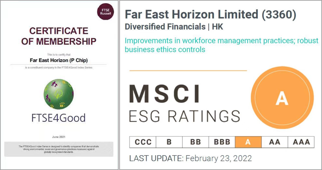 作为具有国际视野的现代化企业,远东宏信还持续在ESG实践方面倾注力量,成果获得了国际机构认可:连续多年入选富时社会责任指数,摩根士丹利资本国际公司(MSCI)ESG评级获评A级,达到中国金融机构领先水平。