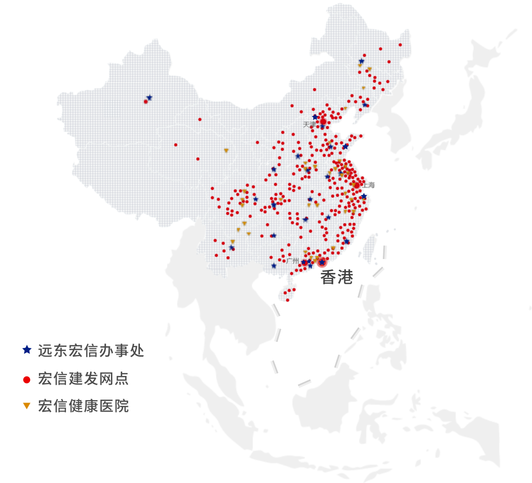 中华大地,幅员辽阔。为更快更好服务产业客户,早在2005年,远东宏信就在长沙设立第一个办事处,突破金融机构以往的服务形式,变“坐商”为“行商”。如今,星星之火已然燎原。公司目前在中国近30个核心城市设立办事处,南北纵穿香港至哈尔滨,东西横跨上海至乌鲁木齐,此外下属产业平台服务网络也逐步延伸至海外,构建起背靠大陆、立足香港、辐射东南亚的格局优势。