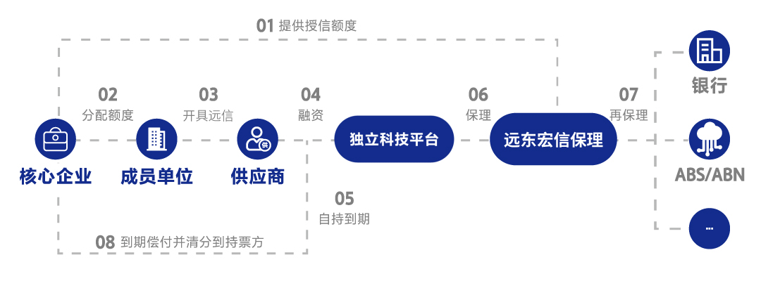 远东宏信量身定制的“远信”由此应运而生!“远信”基于核心企业对供应商的应付款,提供债权数字化、全线上流程运营等供应链信息服务,建立起可融资、可分期的标准化电子确权凭证,将原本核心企业才能享受到的低融资成本,“传导”给产业链上各级供应商,满足了中小企业快速回收应收账款、提高资金周转效率的需求,具有安全、高效、便捷等特点。