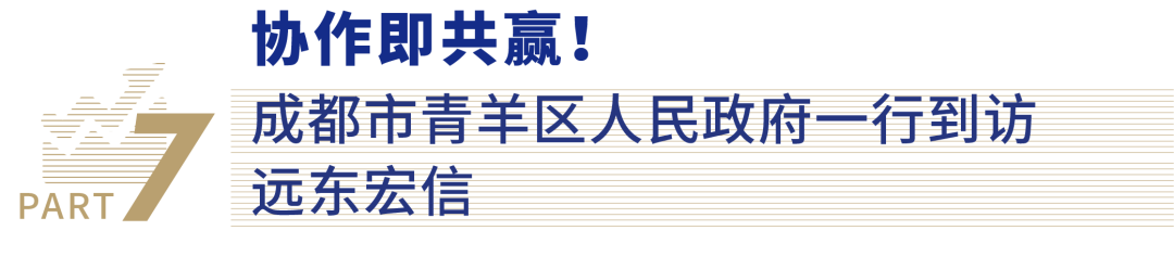 2月7日,成都市青羊区区长冯胜一行到访远东宏信广场,远东宏信建投总经理吴凌烽、远东宏信租赁城市公用二部总经理茅天翔进行了接待。会上,双方就青羊区医疗大健康产业园、城市有机更新等领域展开交流,达成合作意向。远东宏信秉承“金融+产业”的发展理念,针对政府和城市发展的不同需求,灵活制定合作模式与解决方案,导入在城市运营、引导基金搭建、PE/VC投资、FDI直投、医院康养产业运营等领域的成功经验,全方位服务城市升级。
