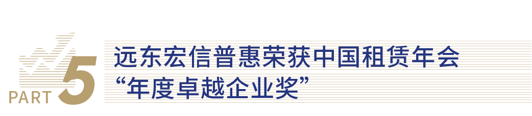 近期,第十一届中国租赁年会在天津成功举行,经评审委员会一致审定,远东宏信普惠荣获第十一届租赁年会“年度卓越企业奖”,这是权威行业机构对公司普惠业务综合实力及行业影响力的又一次肯定。未来,远东宏信普惠将继续坚守“普众之惠,聚力同行”的使命,以服务实体经济为己任,以高效创新为发展动力,持续为中小微企业成长赋能增效。