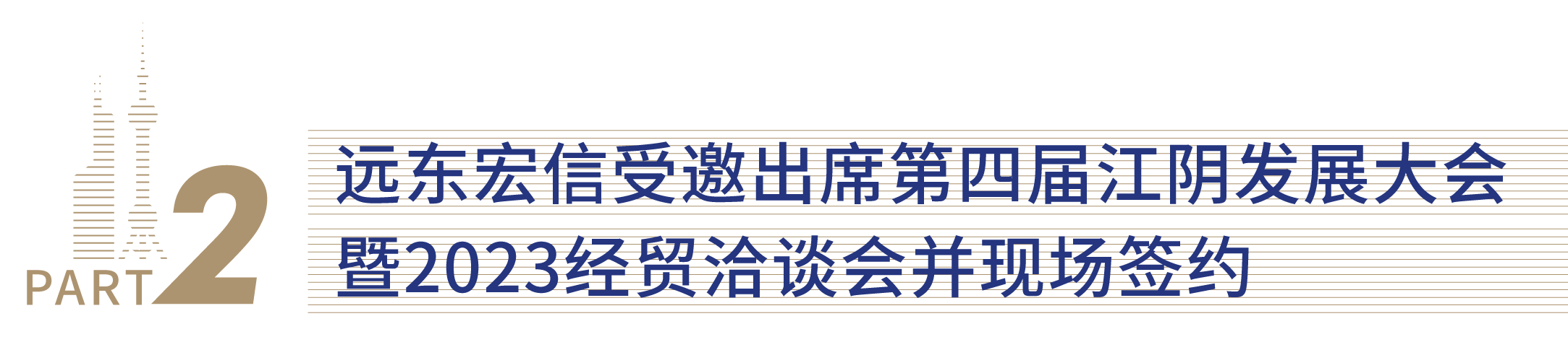 近日,第四届江阴发展大会暨2023经贸洽谈会开幕,来自海内外近700名活跃在工商、科技、教育、医卫、文体、新闻传媒、金融等领域的知名中外籍人士汇聚一堂。远东宏信执行董事、高级副总裁曹健,公司VP张叶出席会议,分别代表远东宏信签订江阴市政府战略合作协议、江阴泛半导体产业专项基金项目合作协议。