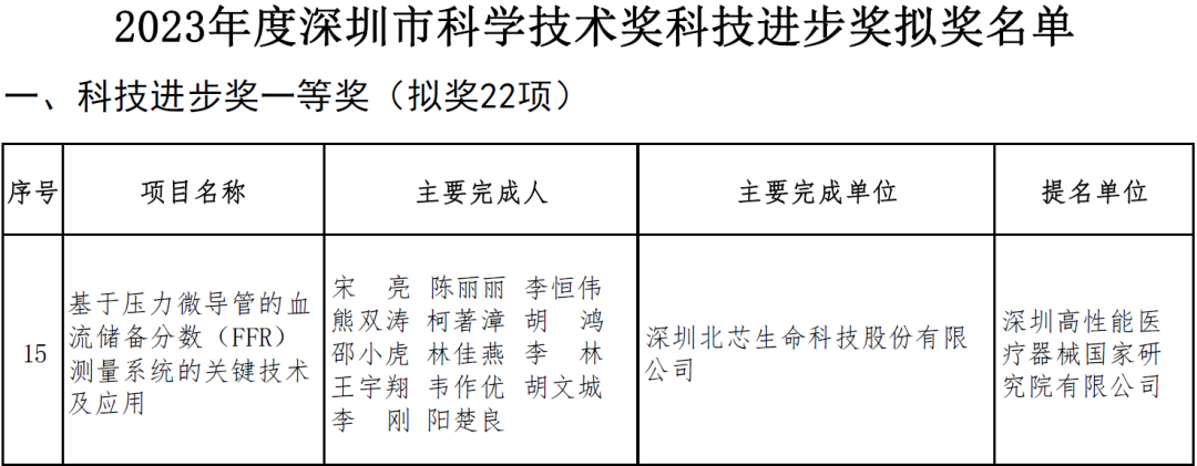 近日,远至资本投资布局的深圳北芯生命科技股份有限公司FFR项目荣获2023年度深圳市科技进步奖一等奖(获奖率约9%)。北芯生命自主研发生产的FFR系统作为首个获批准的国产金标准FFR,打破了进口产品在国内的垄断局面。此次在科技进步奖一等奖评选中脱颖而出,是对北芯生命FFR项目的技术壁垒、创新性及社会效益的充分肯定。