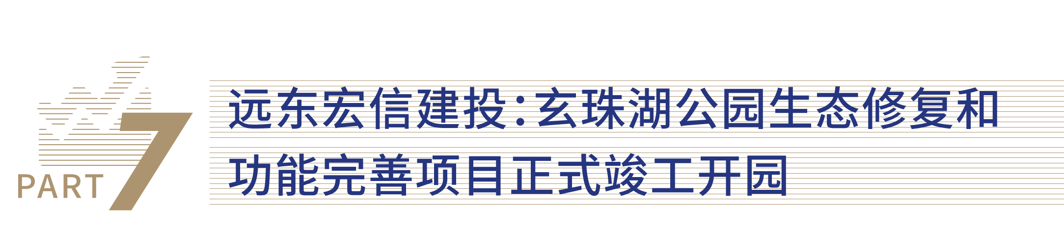 11月1日,由上海宏信建设投资有限公司投资运营和中建三局集团有限公司承建的“旌湖两岸、东湖山、文化娱乐城生态修复和功能完善项目-玄珠湖工区”正式竣工开园并举办开园仪式。远东宏信建投作为项目投资方,后续将持续探索西南区域城市微更新、新能源投资、TOD投资开发、资产运营等多领域合作可能性。