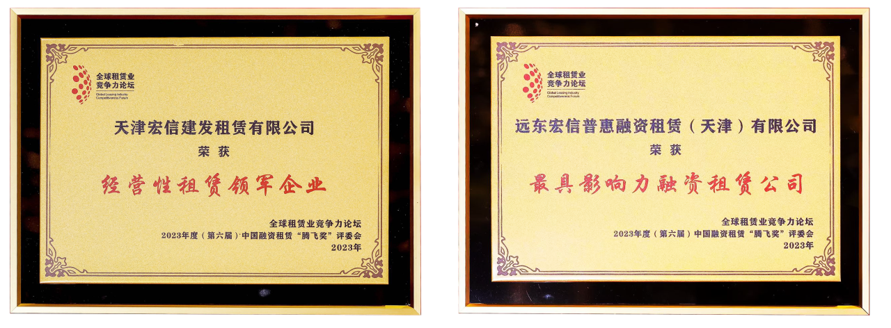 远东宏信普惠、宏信建发双双蝉联中国融资租赁“腾飞奖”
