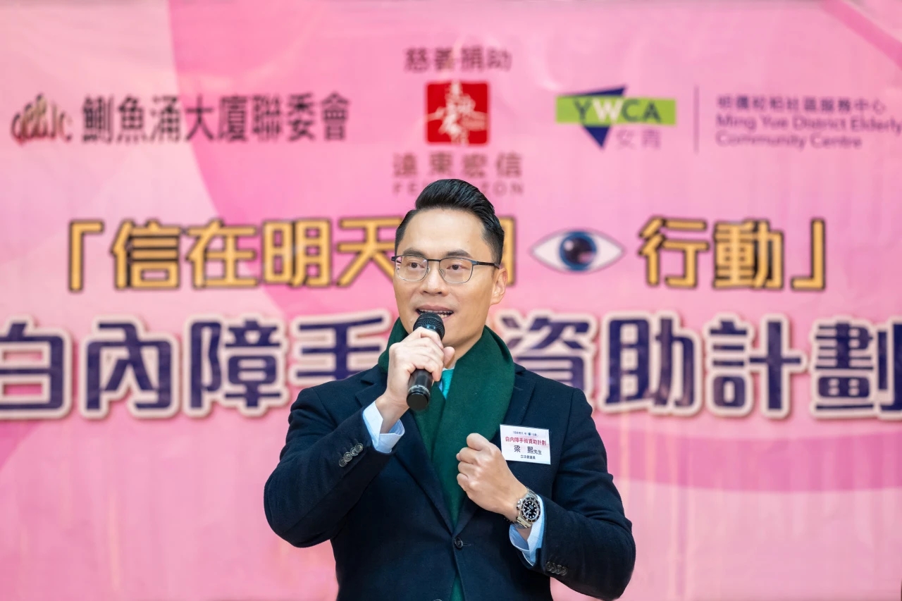 香港东区区议员和鲗鱼涌大厦联委会主席丁江浩表示,社区内有不少患白内障的长者要轮候三四年才能在公立医院手术治疗,生活质量受到很大影响,亟需社会救助。丁议员衷心感谢远东宏信全力支持本次慈善计划,不仅造福区内长者,更为香港慈善公益事业的合作模式进行了创新探索。希望更多企业可以加入远东宏信的行列,为社区注入正能量,传递爱心。