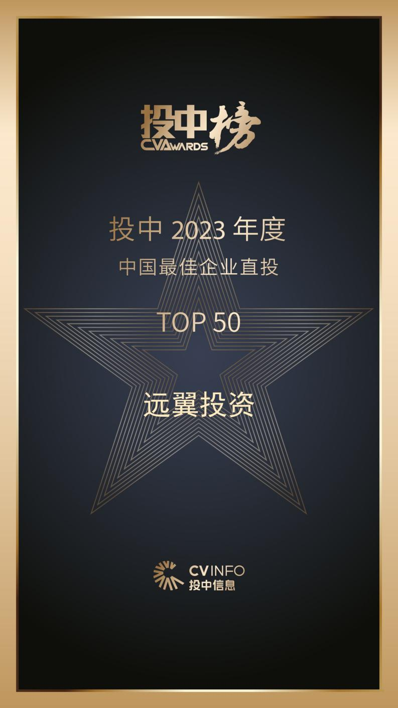 03远翼投资荣获2023投中榜『中国最佳企业直投TOP50』