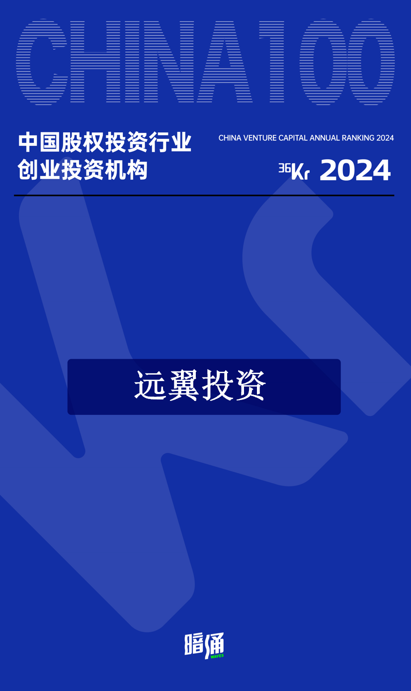 近日,36氪发布2024年度中国股权投资机构年度名册。凭借过去一年优异的投资业绩,远翼投资获评2024年度中国股权投资行业创业投资机构TOP100。本次《年度名册》评选是将“最受创业者欢迎投资机构”和“最受LP认可投资机构”两大榜单合二为一,基于投资机构“募资、投资、管理、退出”四大维度数据,充分考量了入选机构在管理规模及行业影响力、近年投资活跃度、明星项目、后续获得新融资项目数量、以及退出回报水平等细分维度的综合表现。