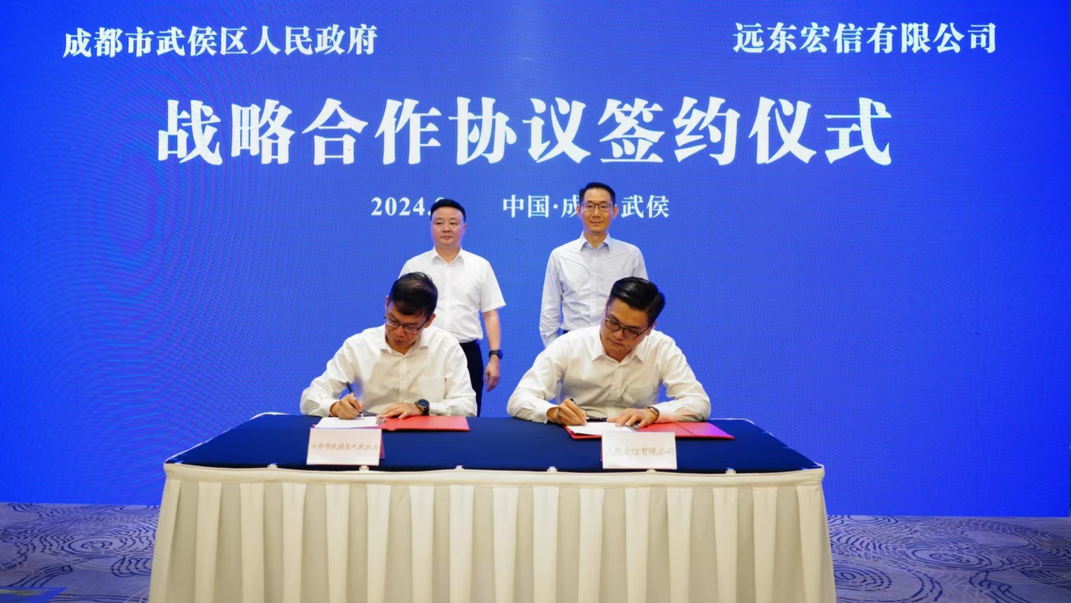 随后,远东宏信城市公用二部总经理茅天翔与成都市武侯区政府副区长赵毅代表双方签署合作框架协议。未来,双方将进一步加强政企合作,共同推动远东宏信各经营板块业务落地成都市武侯区,同时充分发挥双方优势,构建长期和深入的合作伙伴关系。