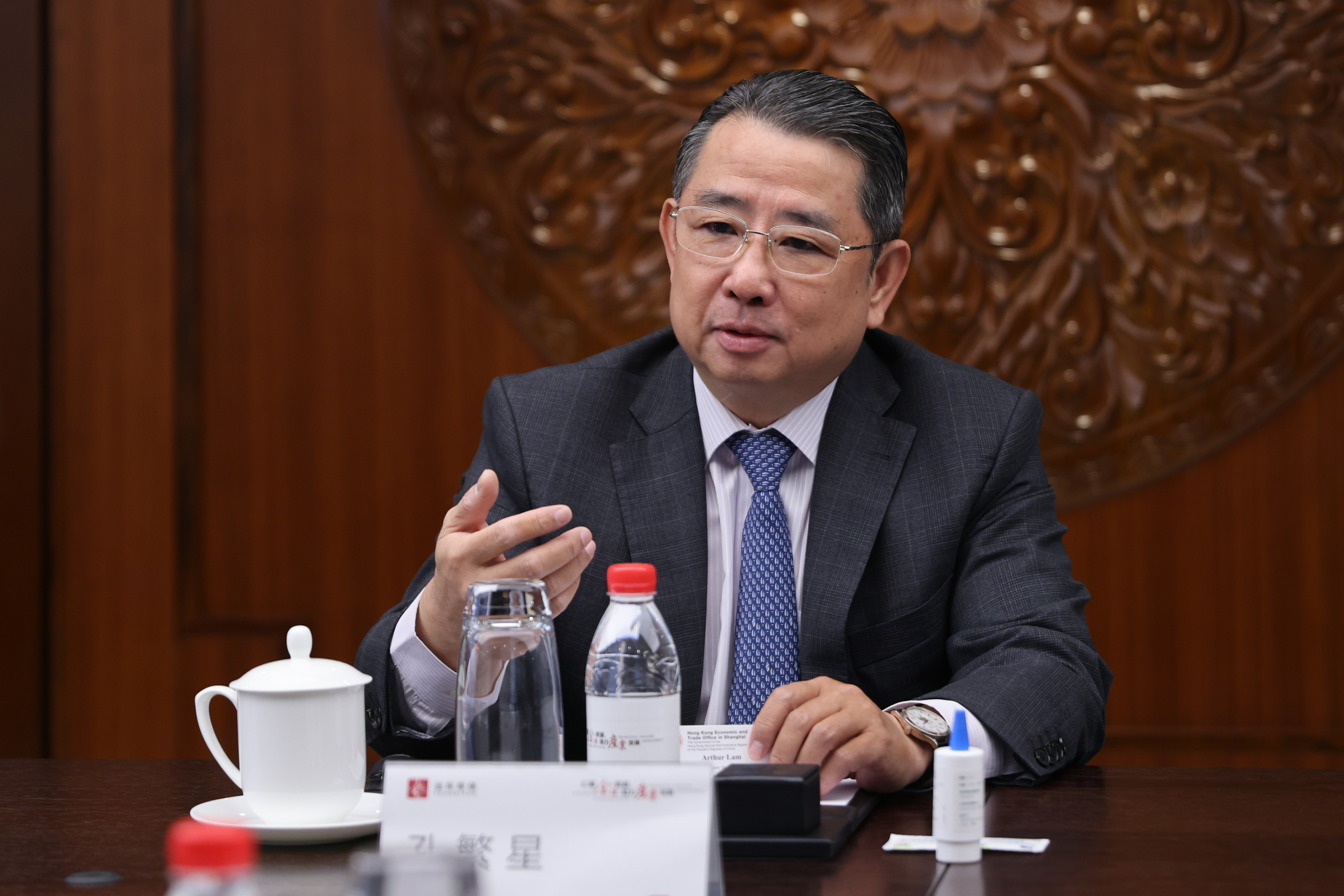 7月8日,香港特别行政区政府驻上海经济贸易办事处(以下简称驻沪办)主任蔡亮一行到访上海远东宏信广场,与远东宏信董事局主席、执行董事、行政总裁孔繁星等公司领导举行会谈。双方围绕深化沪港经贸合作,进一步发挥香港“超级联系人”优势,帮助推动内地企业国际化发展进行深入交流。
