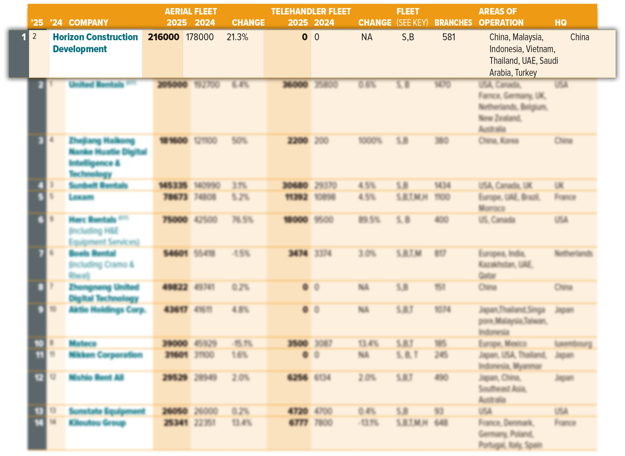 近日,全球工程机械与建筑设备领域最具权威性的机构之一——英国KHL集团正式发布2025年度“Access 50”(全球高空作业机械租赁50强),远东宏信旗下的设备租赁公司宏信建发凭借全方位领先的综合实力与持续的创新动能,从全球顶尖竞争者中脱颖而出,成功登顶榜首!这不仅是一次排名的跃升(较2024年提升一位),更是中国企业在这一全球性重要领域从“参与者”向“领导者”跨越的里程碑,是中国从“基建大国”向“基建强国”迈进过程中产业链服务能力跃升的缩影,标志着中国基建服务品牌的全球影响力达到全新高度。