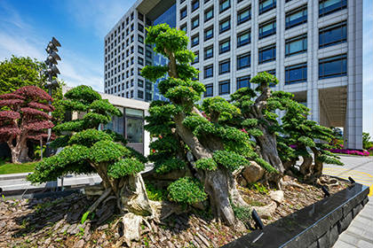 远东宏信致力于开创园林式办公新理念,为员工营造优雅的园林文化环境。办公园林已融入远东血脉,成为企业文化的一部分。远东宏信广场一年四季有超百种花木竞相盛放,广场四个方位按照春、夏、秋、冬四个季节设计主题景观,四季变化,生生不息,荣获上海市建设工程白玉兰奖、上海市园林杯优质工程金奖。远东宏信广场有十八个大景区,疏密有致、主次分明,整体中有细节,细节中见整体。十八景区“大景中有小景”,可谓“一花一世界、一树一乾坤”。
