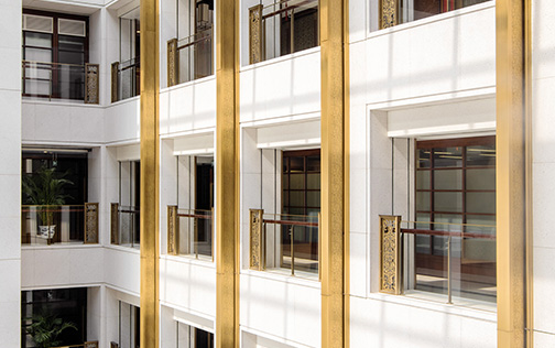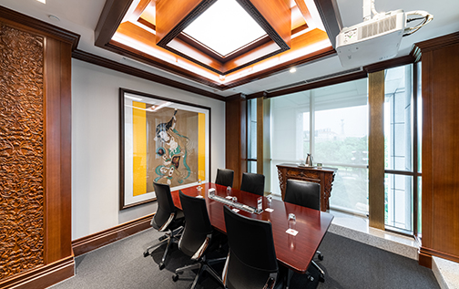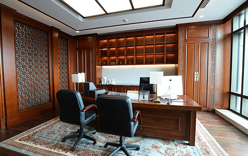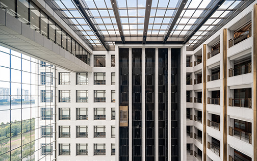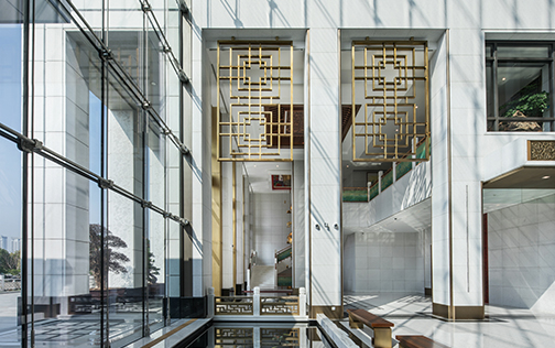远东宏信胸怀助力产业发展的使命,有海纳百川、兼收并蓄的自信,信奉沉稳大气的中庸之道,远东宏信大楼也必然呈现正气、和谐、实用和精致之美。远东宏信大楼深刻把握中式精髓,外观上摒弃堆砌中式元素的传统做法,仅用方正造型、通透九宫格即传达大道至简的中式神韵,再通过精装、软装,多维度展现中式风格的蕴藉。整个大楼宛如中国传统文化的精华展,每个角落都散发着浓浓的书卷气和文化气息。大楼的每处细节设计更是远东人“一丝不苟、精益求精、追求卓越、注入人格”的精神体现。凭借精妙的设计和建造水平,远东宏信广场荣获了代表中国建筑界最高荣誉的权威大奖——国家优质工程奖。