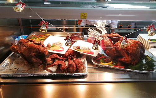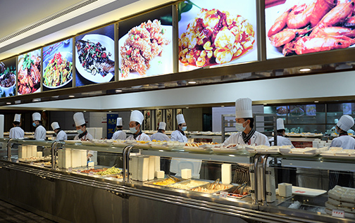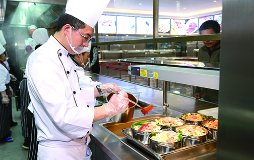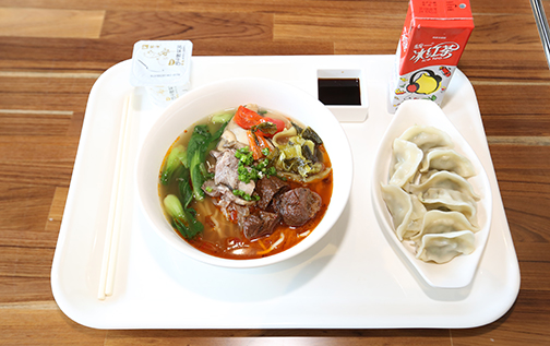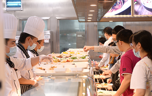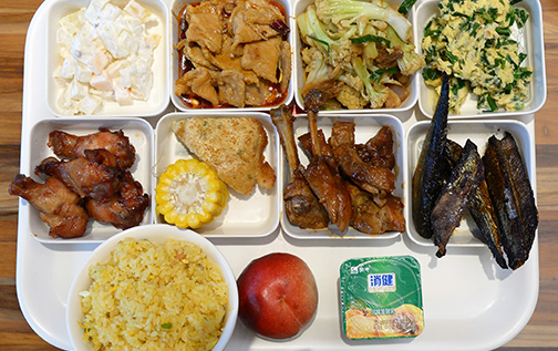 丰富菜品:综合考虑不同区域、不同人群的饮食需求,提供川菜、本帮菜、东北菜、新疆菜等全国各大菜系、近30种餐食;还设有特色外卖档口,为员工提供便利。